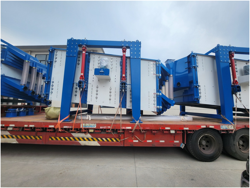 本次發(fā)貨的是客戶在原有的壓裂砂生產(chǎn)線增加篩分產(chǎn)能,新增加三臺(tái)2040型雙四層方形搖擺篩分系統(tǒng),由FU刮板機(jī)、篩分暫存?zhèn)}、流量控制蝶閥、散風(fēng)裝置及成品輸送系統(tǒng)組成。